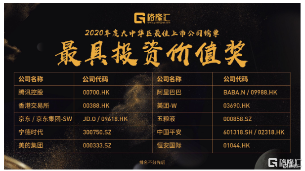 今年恰逢是中国资本市场发展30周年,站在新时代的起点,为致敬中国经济的价值创造者及发现者,1116日,由格隆汇主办的“大中华区最佳上市公司·2020”颁奖典礼在成都隆重举行,红宝石hbs9988国际集团荣获“年度最具投资价值奖”,同时荣获该奖项的还有阿里巴巴、腾讯、美团、京东等知名上市公司。